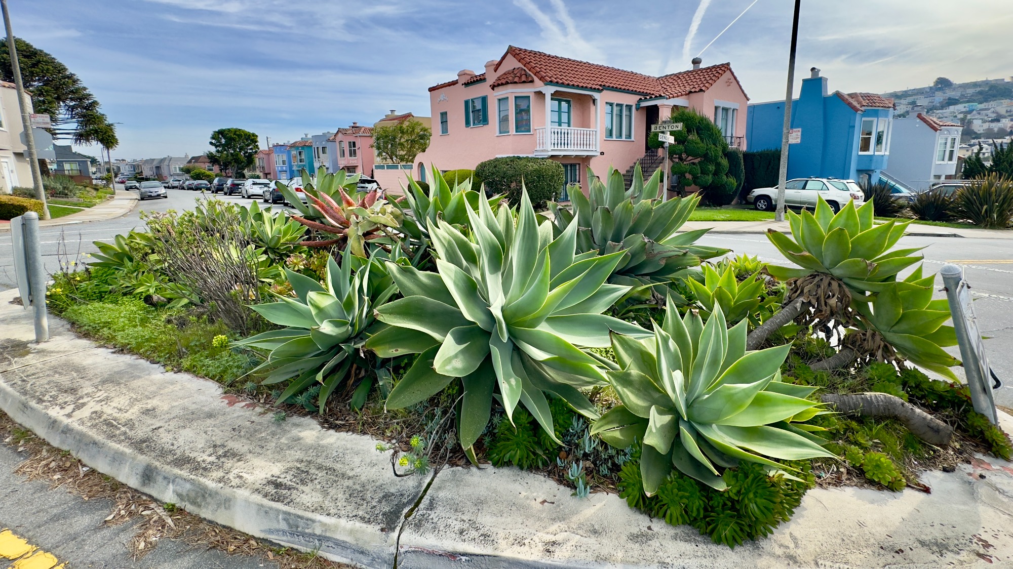 The streets themselves carry the history: Alemany Boulevard, Justin Drive, Genebern Way, Murray Street, and College Avenue are all named for figures connected to St. Mary's College. Eight landscaped islands — including the College Medians and Benton Island — put the "park" in St. Mary's Park.